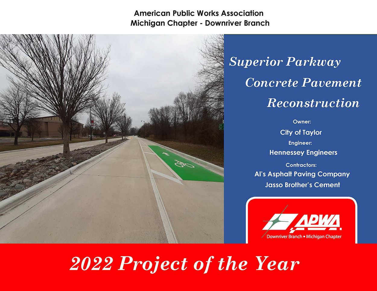The $2.7 million project was a collaborative effort, funded through a combination of City of Taylor Act 51 funds and TIFA district resources. Completed ahead of schedule and under budget, it earned the distinction of “2022 Project of the Year” from the American Public Works Association (APWA) Downriver Branch.
